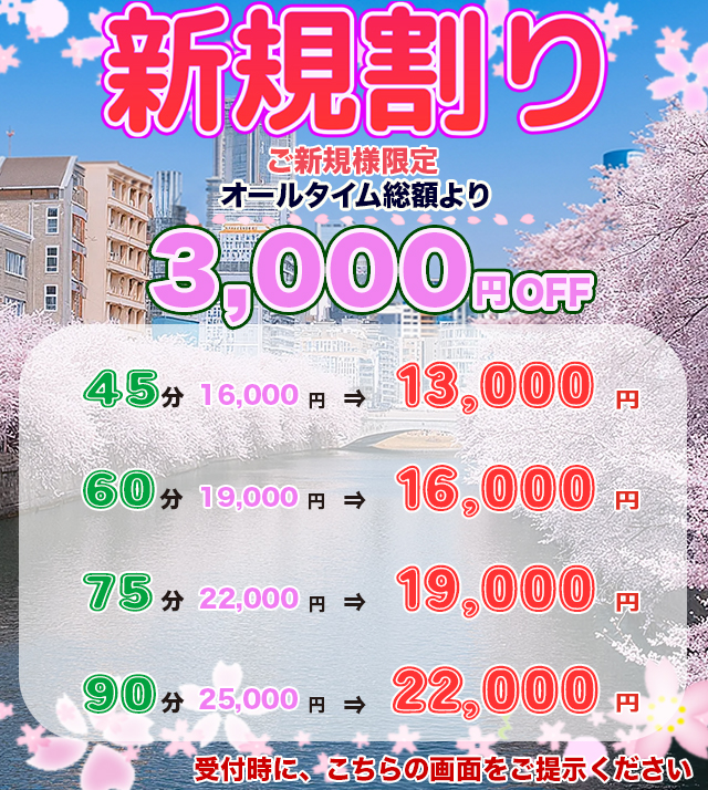 ご来店の際「新規割り!見た」と画面をご提示下さい。